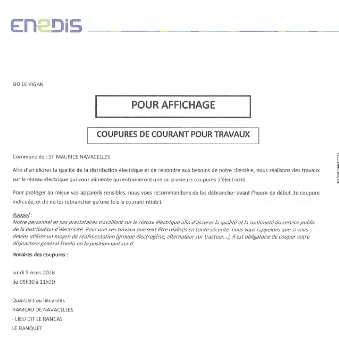 ATTENTION COUPURE D’ÉLECTRICITÉ